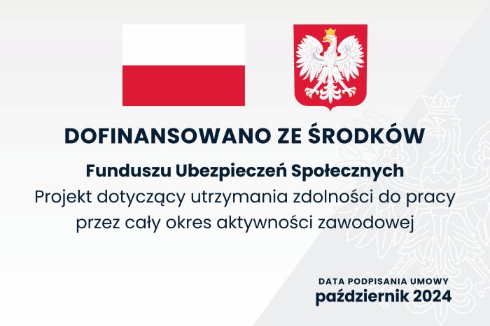 Dofinansowano ze środków „Funduszu Ubezpieczeń Społecznych”, z „Programu dofinansowania płatników składek w ramach prewencji wypadkowej”.
